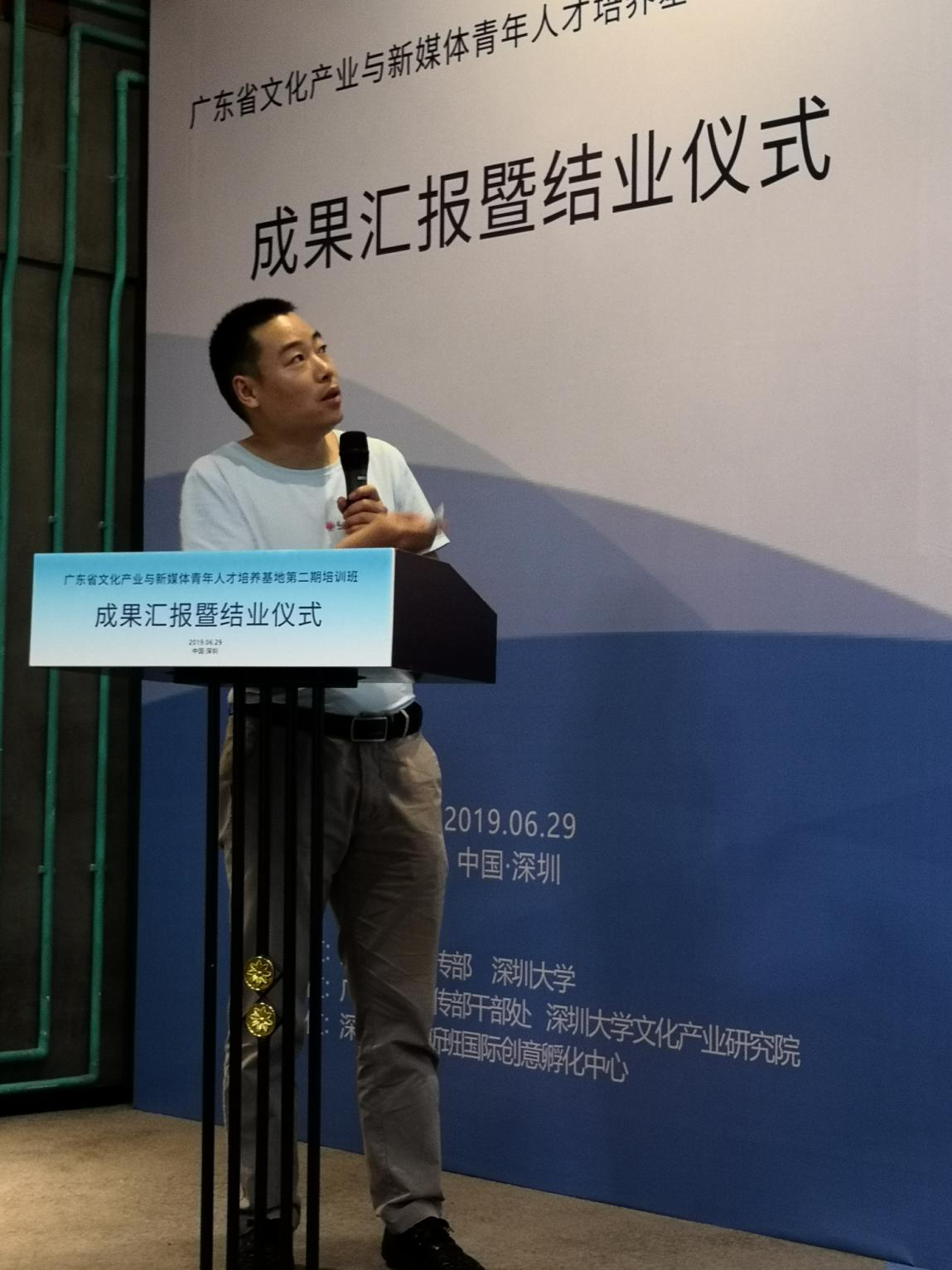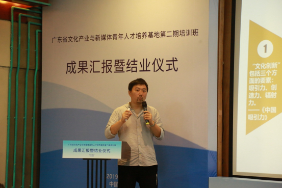 2019年6月29日,广东省文化产业与新媒体青年人才培养基地第二期培训班在深圳—布里斯班国际创意孵化中心举行成果汇报暨结业仪式,33名来自全省各地的学员在圆满完成各项培训计划后,喜获“广东省文化产业与新媒体青年人才”结业证书。