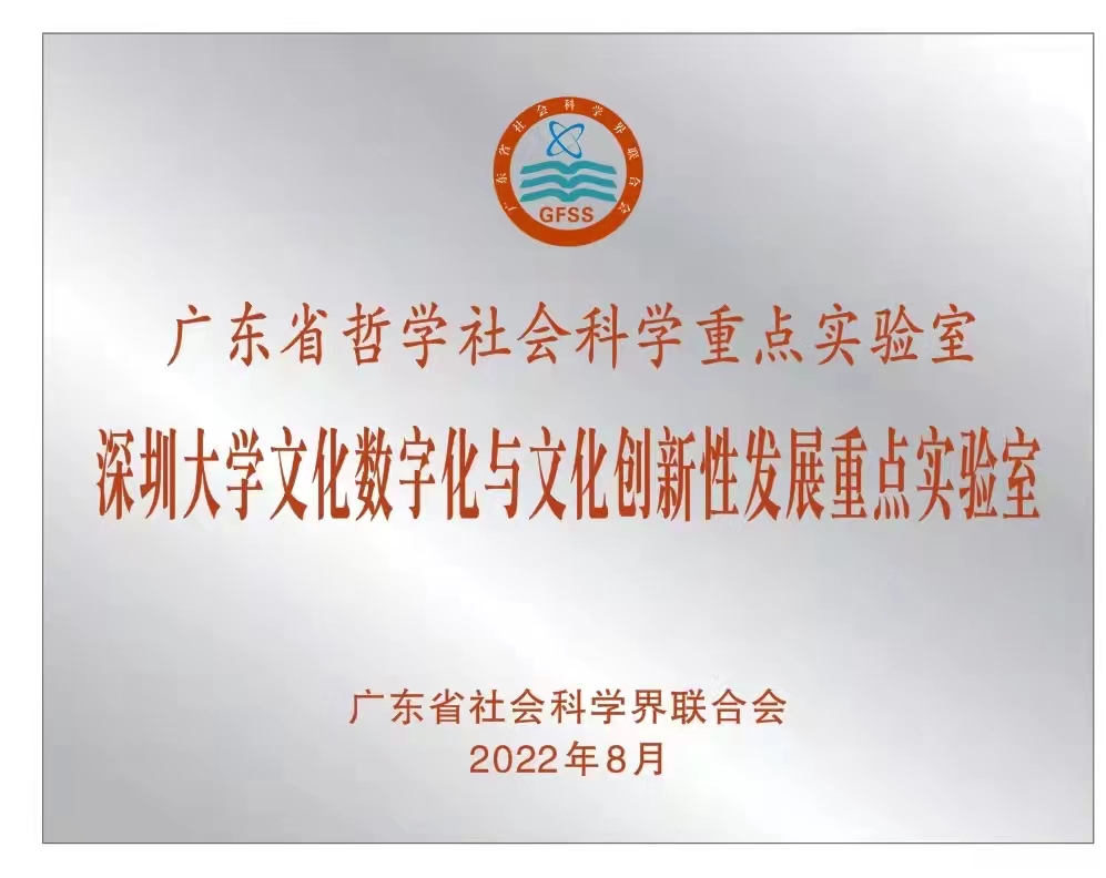 2022年8月,深圳大学文化数字化与文化创新性发展重点实验室被批准为广东省哲学社会科学重点实验室。这是深圳大学获批的第一家,也是目前全省唯一落户深圳的哲学社会科学重点实验室。