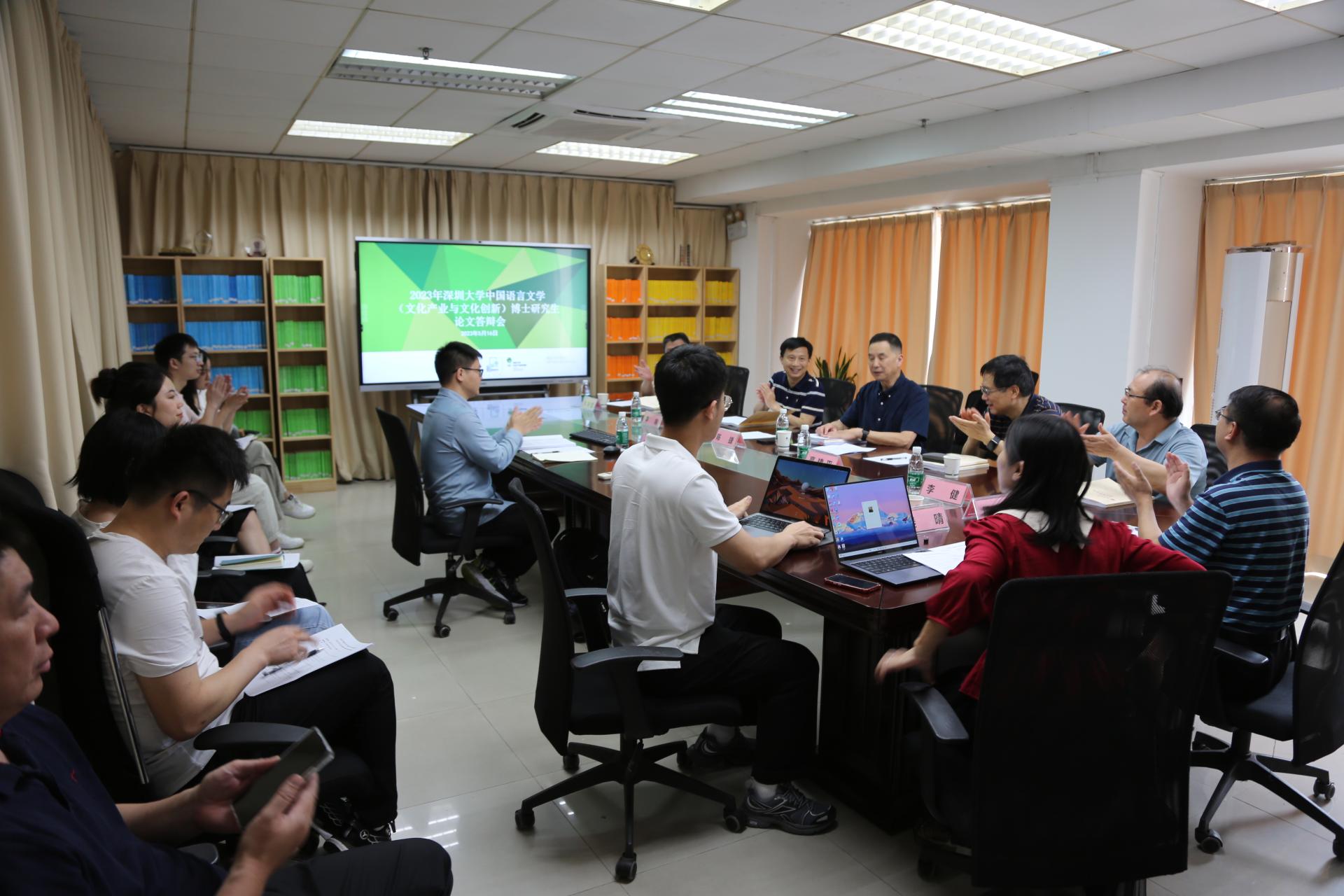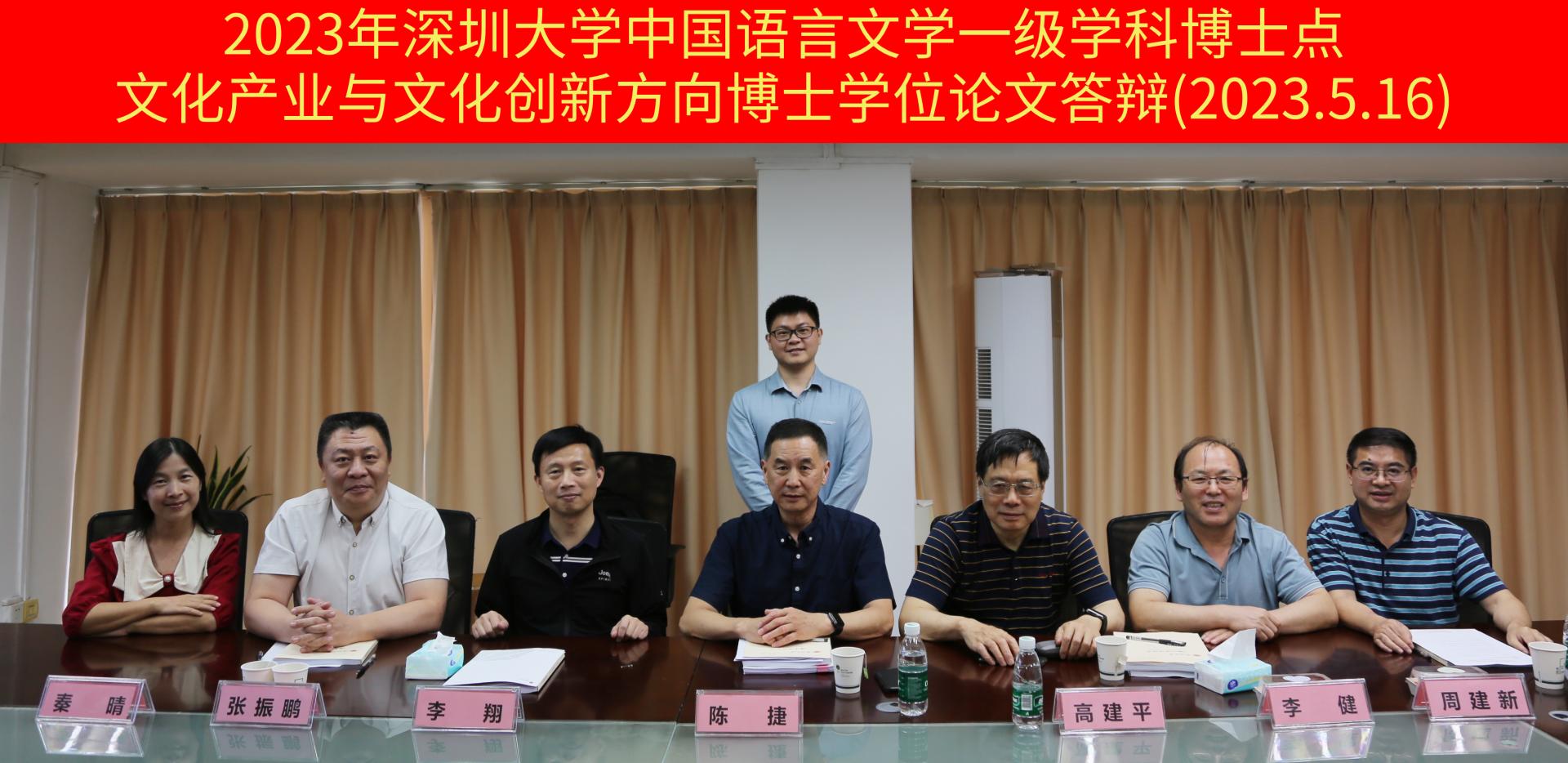 2023年5月16日下午,深圳大学中国语言文学一级学科博士点文化产业与文化创新方向博士学位论文答辩会议在深圳大学汇文楼5楼2523-2顺利举行。