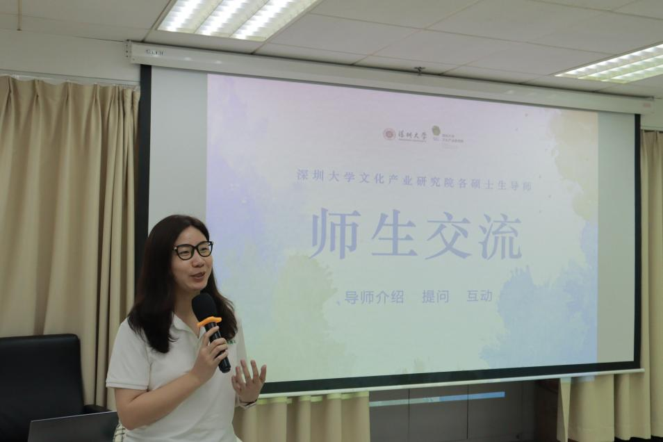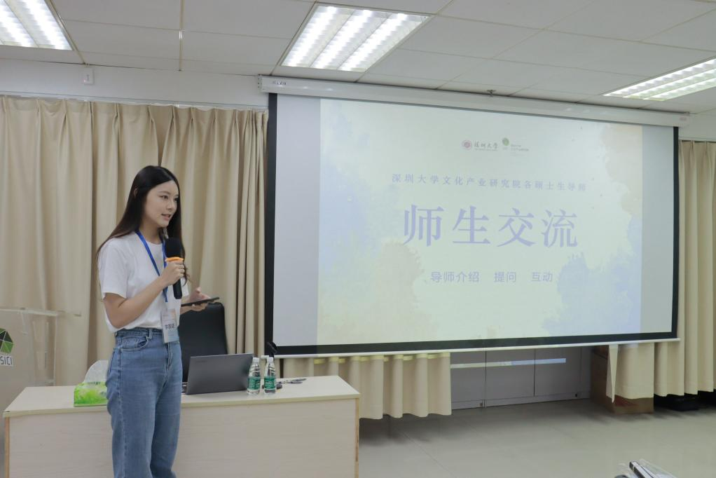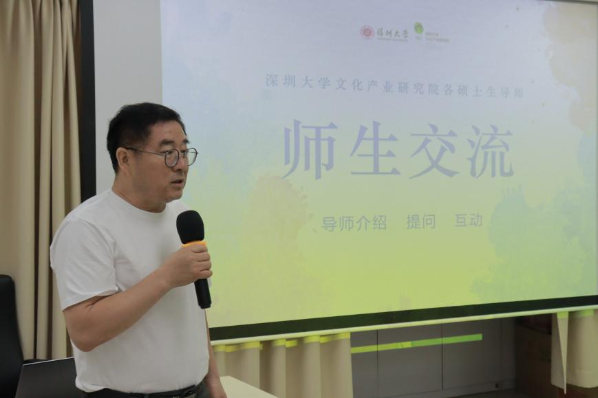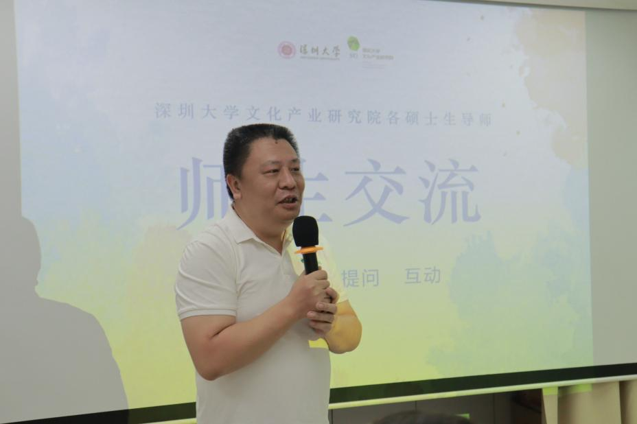 随后深圳大学艺术学理论(文化产业)暑期学校指导老师宗祖盼、黄永建、张振鹏、李新风、胡鹏林、钟雅琴、温雯、车达分别进行了自我介绍,详细说明了自己的研究方向,同学们也积极与在场老师进行互动交流。