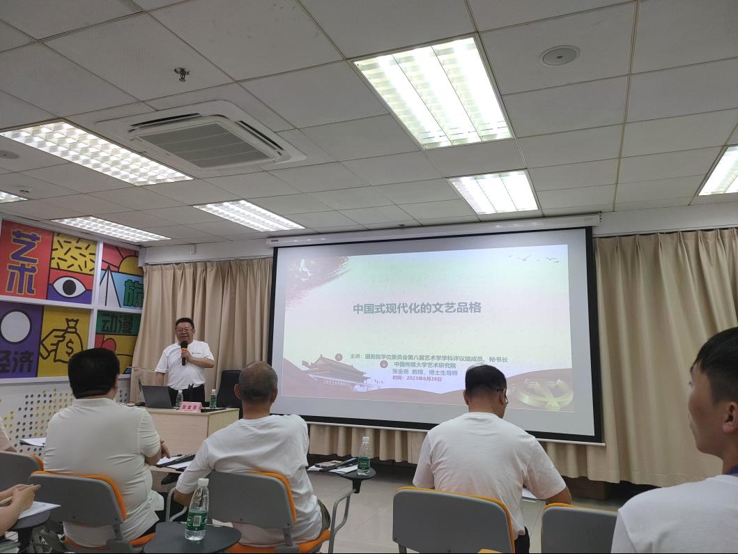 张金尧教授以“中国式现代化的文艺品格”为主题展开讲座,从二十大报告的关键词“现代化”,强调我们作为中国式现代化强国建设的主力军,为实现中国的第二个百年奋斗目标,建成社会主义现代化强国的重要性。