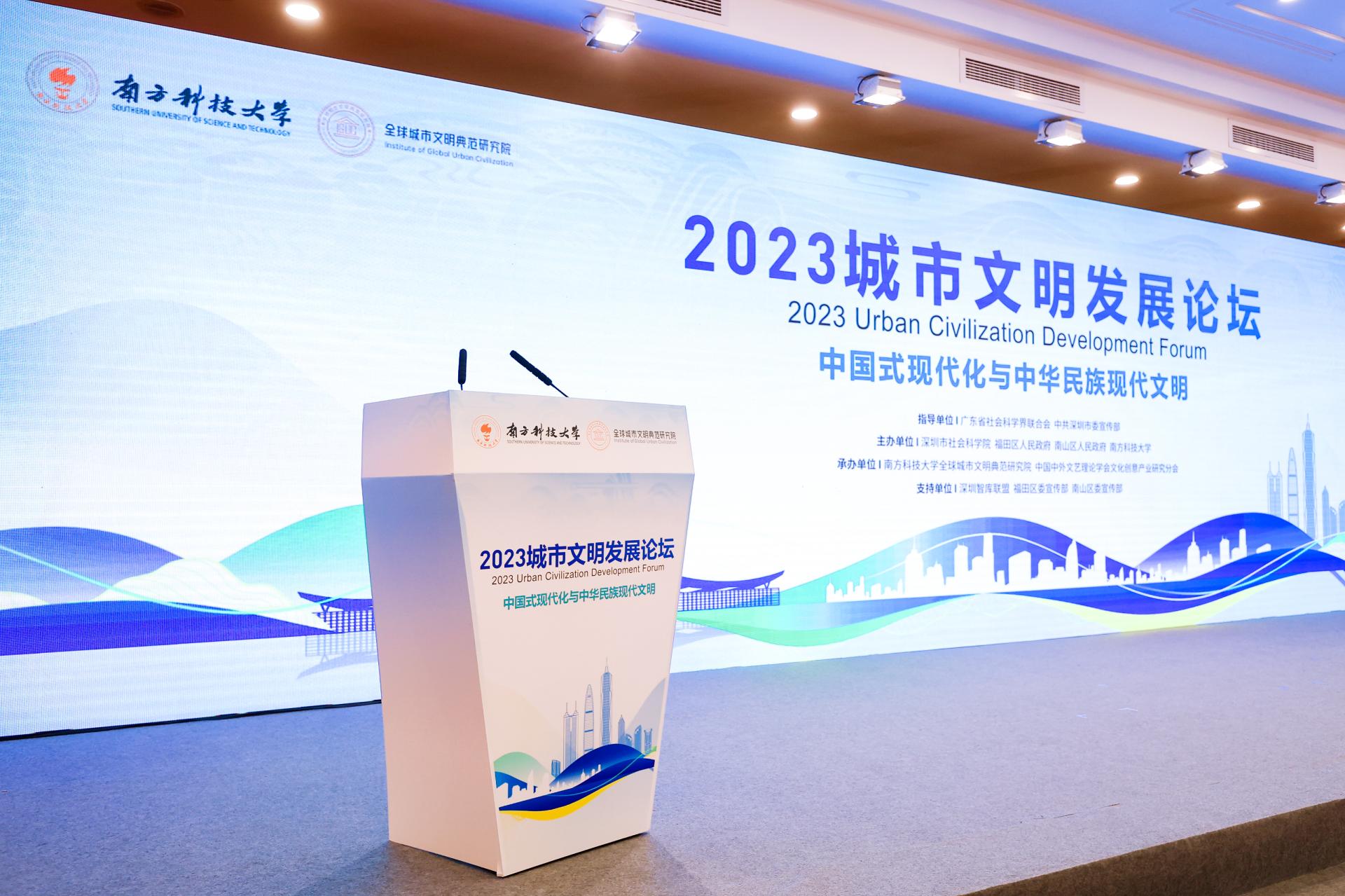 2023年10月21日,由广东省社会科学界联合会、中共深圳市委宣传部指导,深圳市社会科学院、福田区人民政府、南山区人民政府、南方科技大学主办,南方科技大学全球城市文明典范研究院、中国中外文艺理论学会文化创意产业研究分会承办,深圳智库联盟、福田区委宣传部、南山区宣传部支持的“2023城市文明发展论坛”在深圳五洲宾馆举行,会议吸引了来自国内外的100多名政产学研专家。本次论坛对如何以习近平文化思想为指引,在推进中国式现代化建设进程中加强城市文明建设,努力建设中华民族现代文明进行了深入探讨。我院院长周建新教授、副院长张振鹏教授、李新风特聘教授、温雯研究员、钟雅琴研究员、宗祖盼研究员、徐天基副教授等老师和多位博士后、博士、硕士研究生参加了本次论坛。