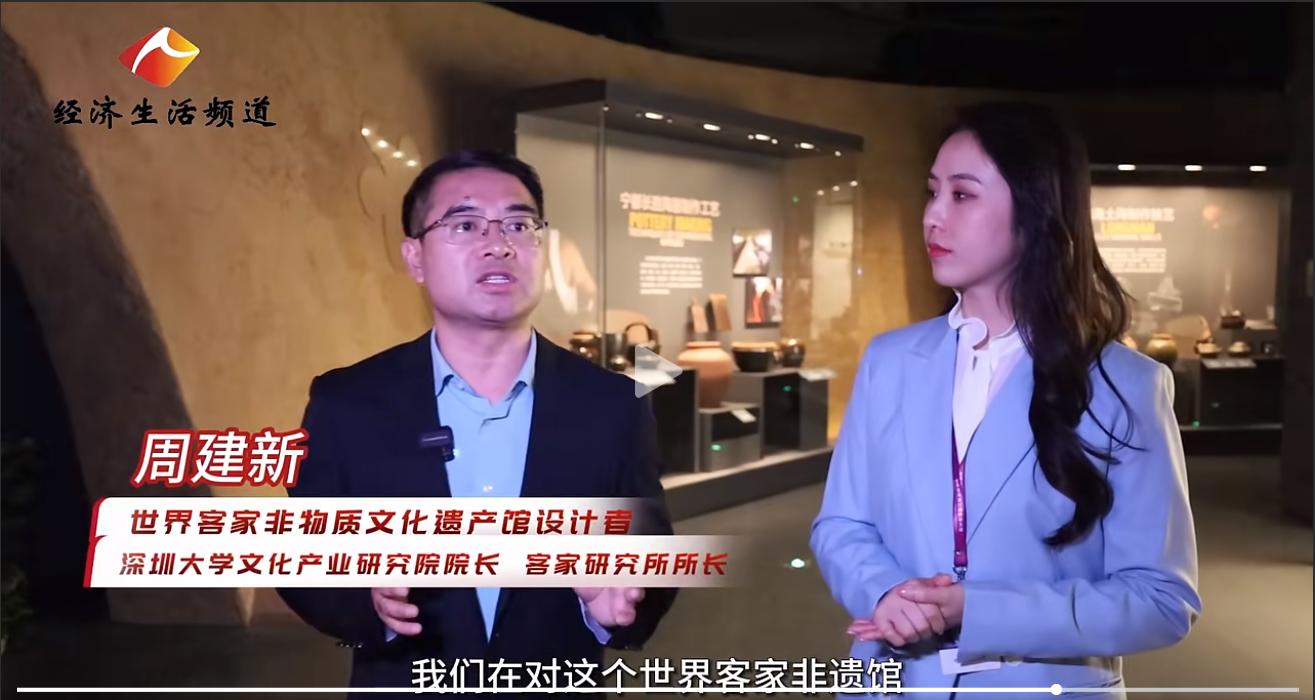 世界客属第32届恳亲大会期间还正式对外开放了世界客家非物质文化遗产馆。世界客家非物质文化遗产馆位于世界客家民俗文化城,也是第32届世客会的主会馆,总建筑面积约1万平方米,由周建新教授负责整体的策划设计。世界客家非遗馆通过现代科技手段活态展示国内外130余种客家非遗项目,是迄今为止全球规模最大的客家非遗展览馆。展馆包括序厅、“非”常客家、“非”常传奇、“非”同凡响、“非”常味道、“非”看不可、“非”常创意、“非”你莫属、“非”越世客等8个主题展厅以及临时展厅等,是一座集客家文化展示传承、研学教育、旅游休闲娱乐等功能于一体的活态非遗展示馆。