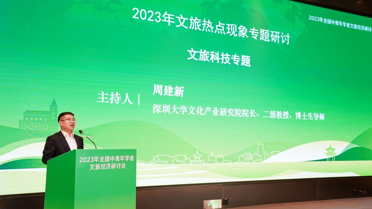 深圳大学文化产业研究院院长周建新主持大会“文化科技专题”版块。与来自地方政府、文旅企业的文旅热点现象案例代表一同深入探讨交流,就文旅科技中热议的“百度数字人”“文心一言大模型”“数字人导游”“夜游庐陵沉浸式演艺”等话题,共同探讨展望文旅经济发展的实践与未来。