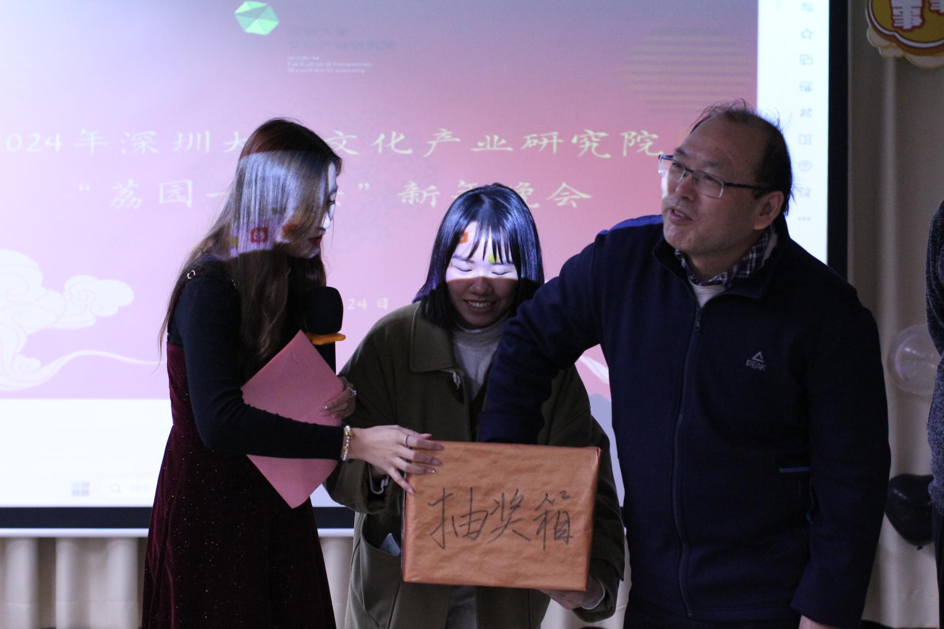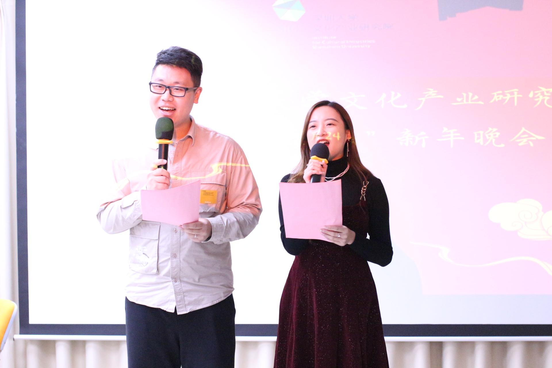 本次晚会由深圳大学文化产业研究院2023级博士生谢金苗、张立威主持。