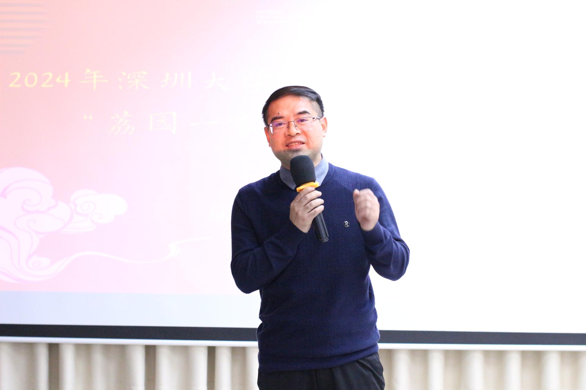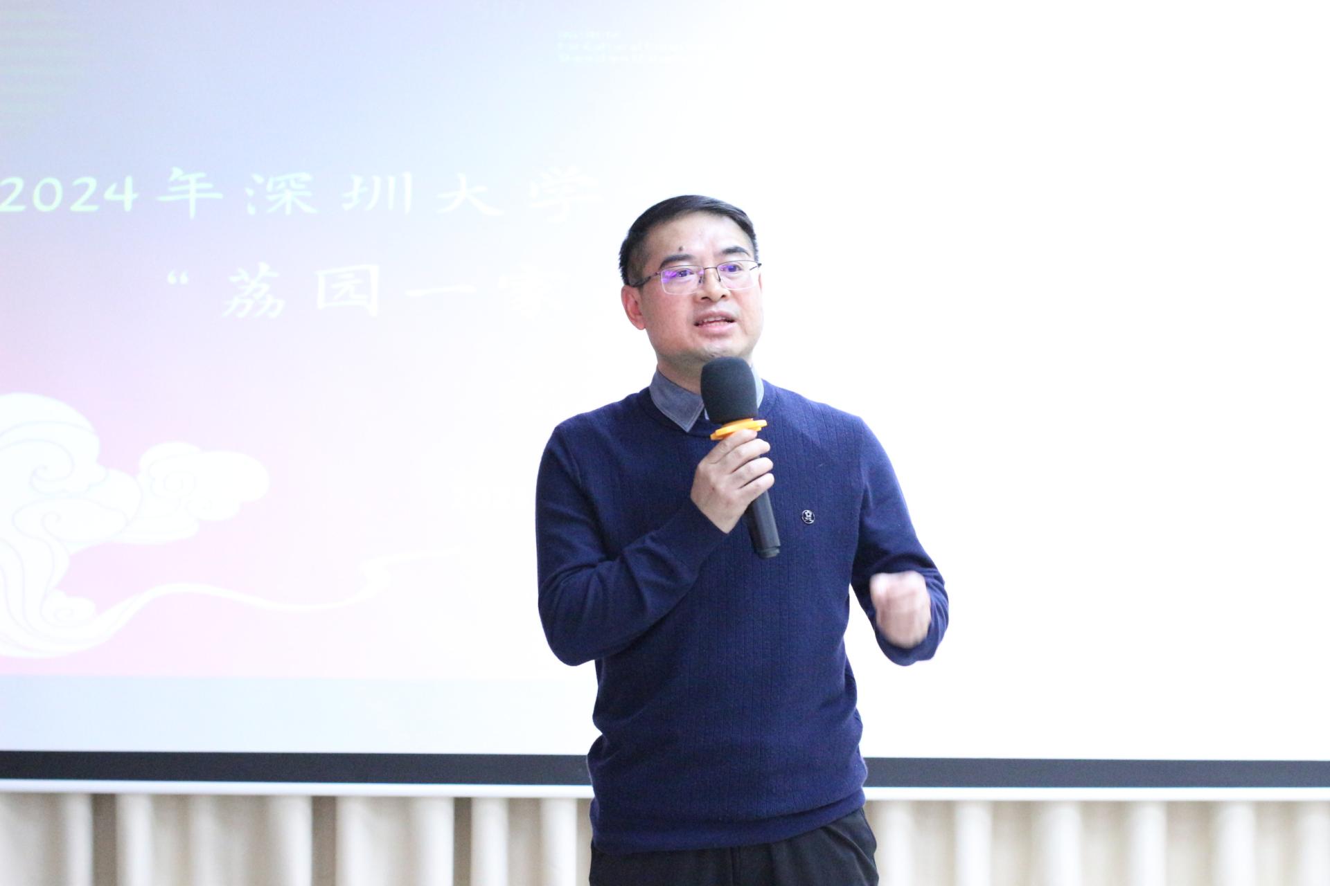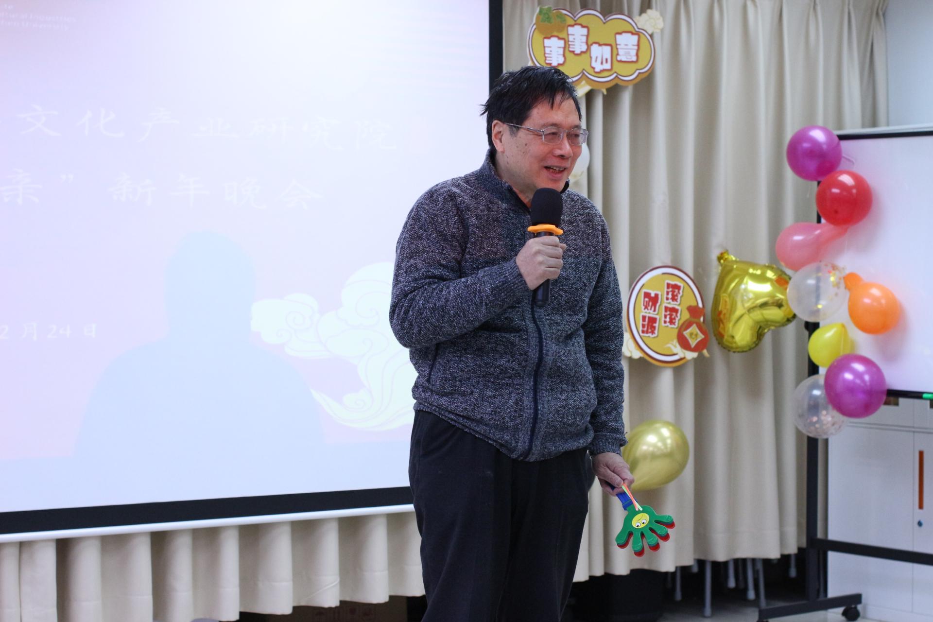 岁序更替,华章日新,2023年12月24日晚,深圳大学文化产业研究院“荔园一家亲”庆元旦暨2024新年晚会在汇文楼5楼2523-4举行。新的一年即将来临,在此辞旧迎新之际,师生欢聚一堂,共同庆祝新年的到来。华南农业大学党委书记李凤亮、美学与文艺批评研究院院长高建平、文化产业研究院院长周建新、文化产业研究院特聘教授李心峰、美学与文艺批评研究院副院长李健、文化产业研究院副院长胡鹏林,以及文化产业研究院全体师生出席参加此次晚会。