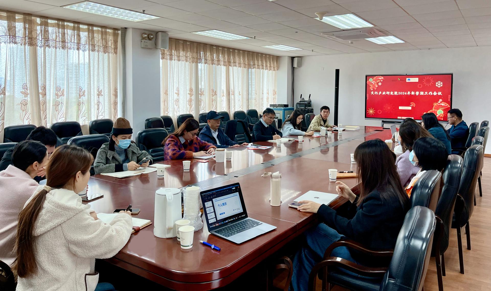会议在热烈的气氛中拉开帷幕。首先,周建新院长作新学年开工动员讲话。他对上学期与寒假期间的工作进行了简要回顾,对取得的成果给予了充分肯定,同时也指出了存在的问题和不足。他强调,2024年是文化产业研究院建院15周年,我们要谋新篇开新局,围绕艺术学一级学科博士点申报和15周年院庆开展一系列学术活动。