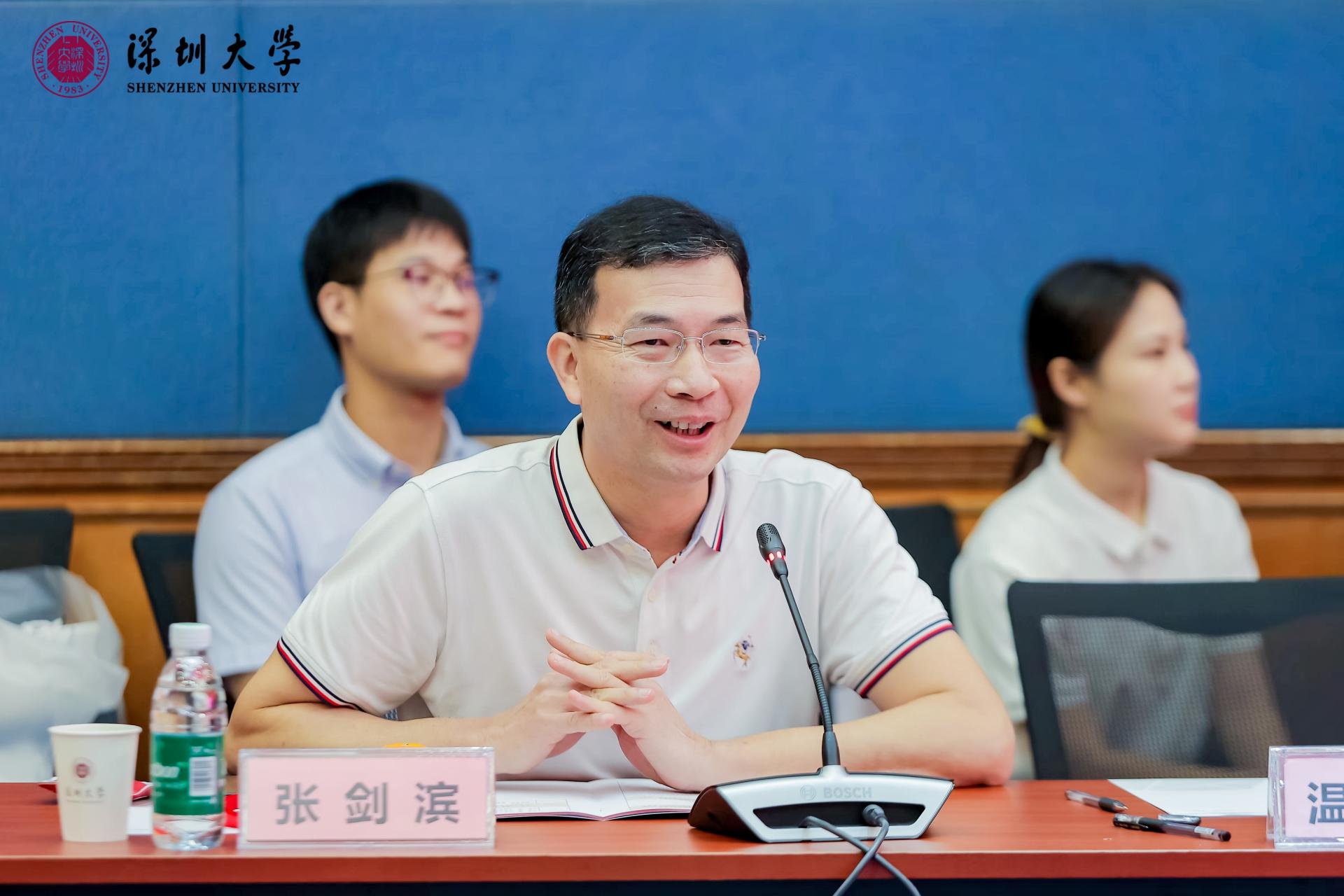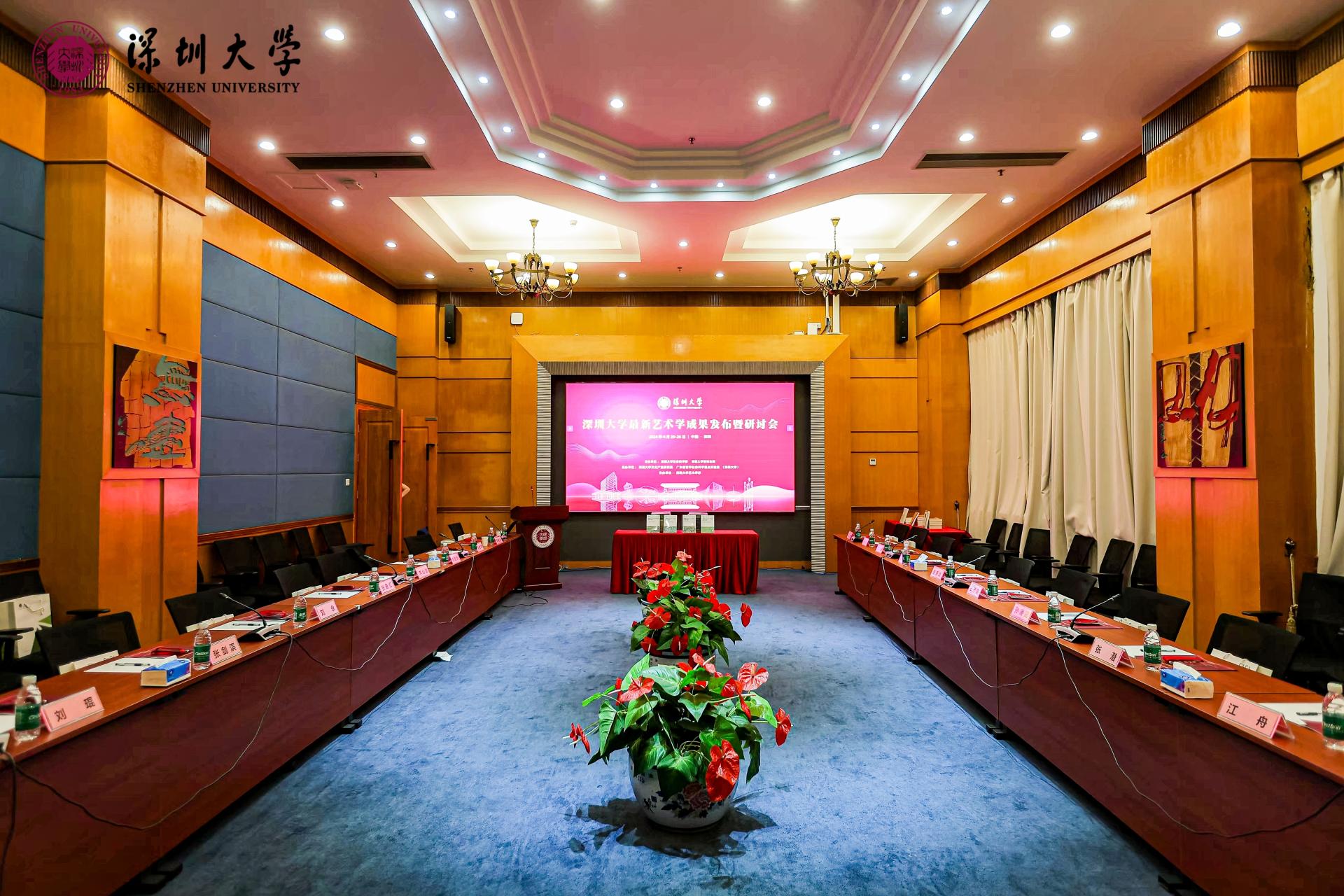夏燕靖、王廷信、深圳大学美学与文艺批评研究院副院长、教授李健、深圳大学艺术学部党委书记张剑滨、深圳大学艺术学部副主任、教授刘琨、深圳大学国际交流学院党总支副书记秦晴、孙晓霞、冯巍、江舟、张潜等校内外专家学者围绕深圳大学最新艺术学成果及深大艺术学学科建设、学科发展等主题展开深入研讨、交流。
