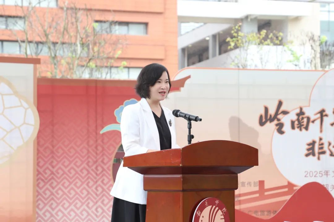 在启动仪式上,广东省哲学社会科学重点实验室(文化数字化与文化创新发展)主任、韶关学院校长张晓红致欢迎词。她希望,以本次活动为契机,携手共进、聚势赋能,以敬畏之心延续文明根脉,以创新之智点燃传承星火,让中华优秀传统文化和自然遗产从历史长河中的“活化石”真正变成驱动未来的“新力量”。