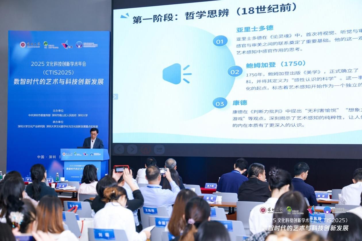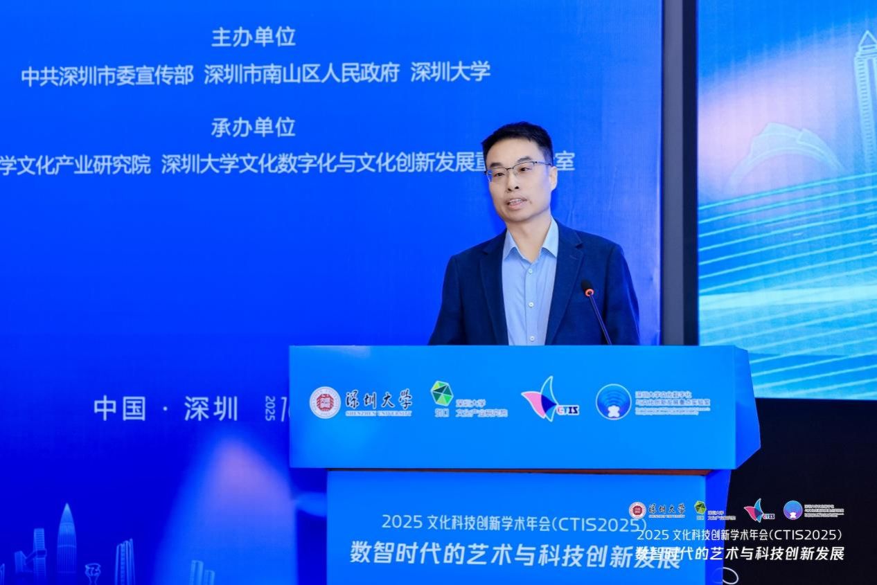 2025年11月1日,由原文化部文化科技司指导,中共深圳市委宣传部、深圳市南山区人民政府、深圳大学主办,深圳大学文化产业研究院、深圳大学文化数字化与文化创新发展重点实验室承办的“2025文化科技创新学术年会(CTIS2025)”在深圳大学顺利举办。会议吸引了来自国内外的200余名专家与青年学者,深入探讨了“数智时代的艺术与科技创新发展”这一时代发展重要议题,以期助力社会主义文化强国宏伟目标的实现。