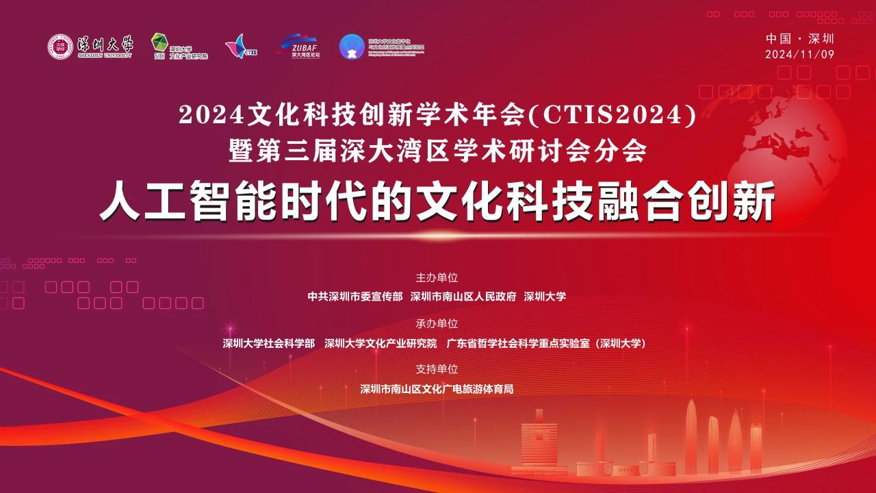11月9日,“2024文化科技创新学术年会(CTIS2024)暨第三届深大湾区学术研讨会分会”在深圳举行,来自国内外的百余名专家与青年学者围绕主题“人工智能时代的文化科技融合创新”展开深入探讨。会议由文化和旅游部科技教育司指导,中共深圳市委宣传部、深圳市南山区人民政府、深圳大学主办,深圳大学社会科学部、深圳大学文化产业研究院、深圳大学文化数字化与文化创新发展重点实验室承办,深圳市南山区文化广电旅游体育局支持协办。