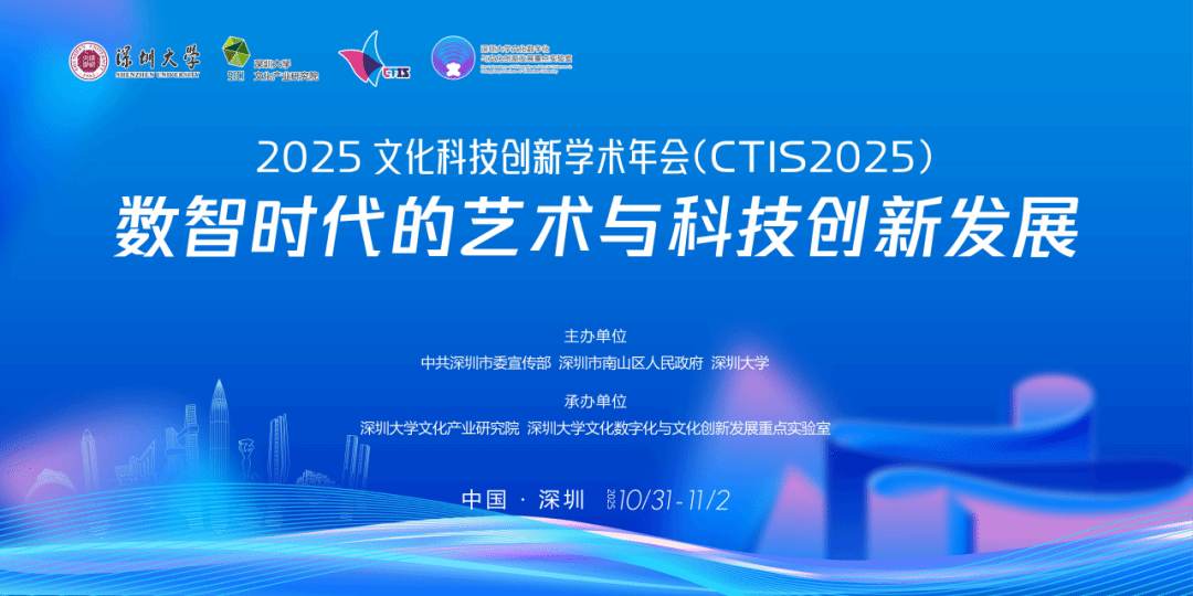 2025年11月1日,由原文化部文化科技司指导,中共深圳市委宣传部、深圳市南山区人民政府、深圳大学主办,深圳大学文化产业研究院、深圳大学文化数字化与文化创新发展重点实验室承办的“2025文化科技创新学术年会(CTIS2025)”在深圳大学顺利举办。会议吸引了来自国内外的200余名专家与青年学者,深入探讨了“数智时代的艺术与科技创新发展”这一时代发展重要议题,以期助力社会主义文化强国宏伟目标的实现。