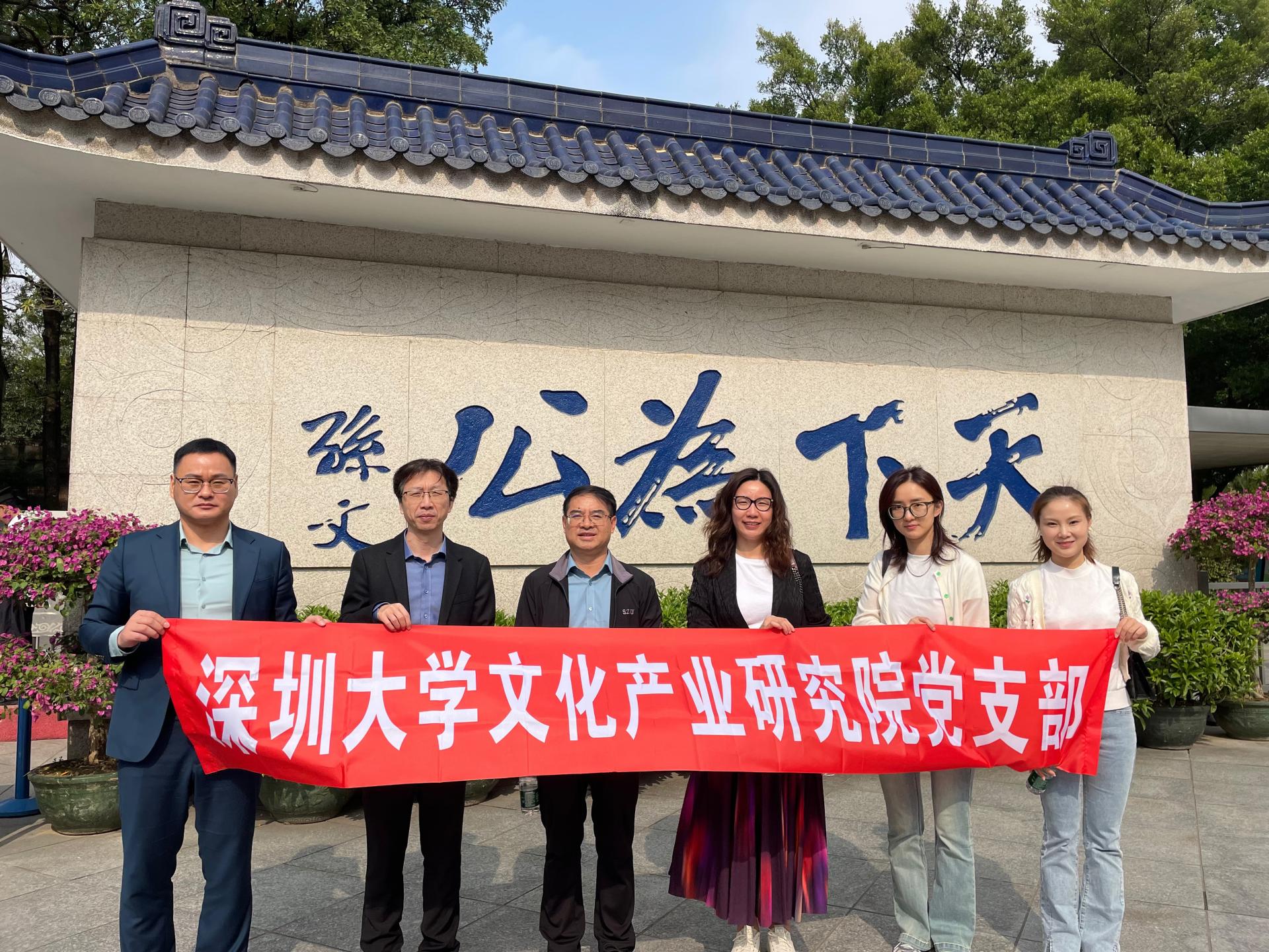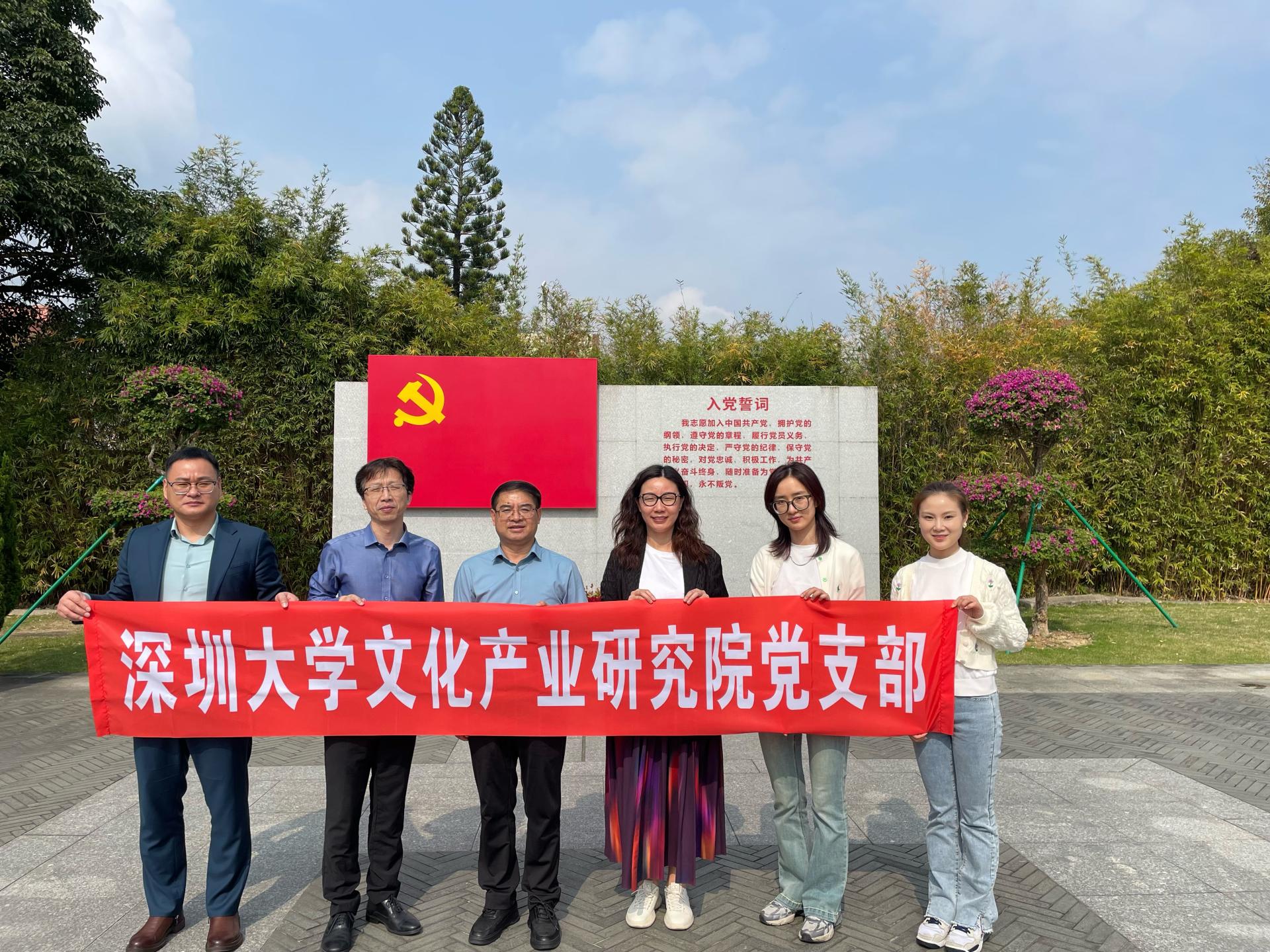 2024年12月5日,深圳大学文化产业研究院党支部书记周建新教授率队赴中山市南朗街道开展为期一天的党建活动。此次活动旨在加强党员的党性教育,传承红色基因,推动党建工作与业务工作深度融合。