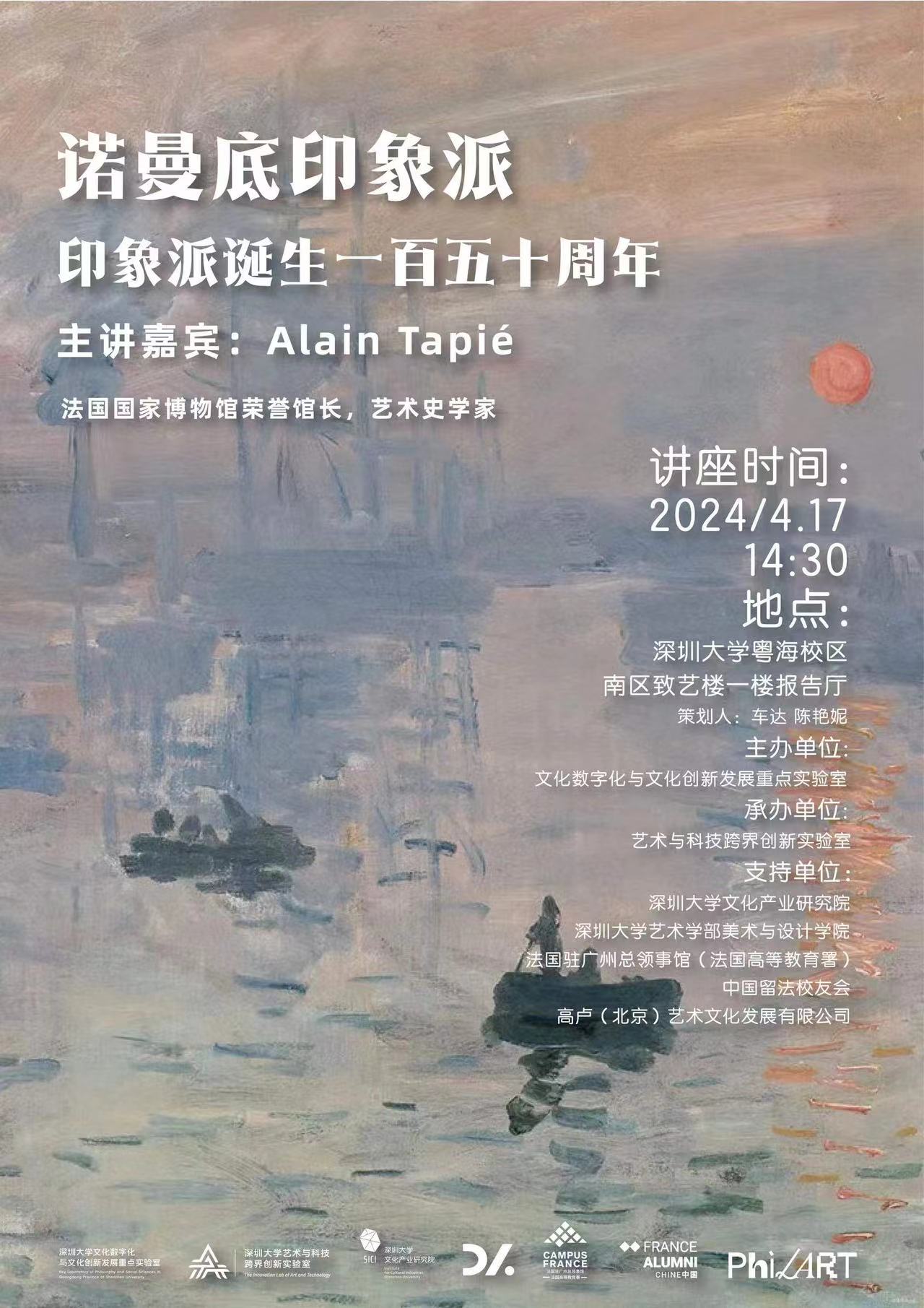 4 月 17 日,实验室举办“诺曼底印象派——印象派诞生一百五十周年”主题讲座及中法文化交流会,邀请法国艺术史学家 Alain Tapié 教授为主讲嘉宾,为师生们带来了一场精彩绝伦的文化盛宴。通过这场讲座,师生们不仅了解了印象派的起源和发展,也深化了对中法文化交流的理解。