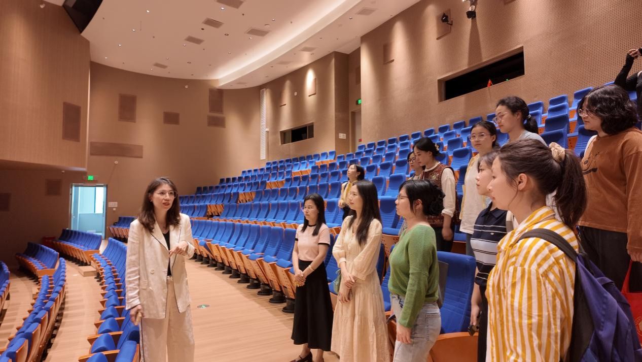 离开大万世居,师生们乘车来到坪山文化馆。坪山文化馆位于坪山区梓平路,楼高三层,馆内设有自习室、展览厅、录音室、文艺创作室、专业舞蹈教室及各类艺术培训教室,是坪山区开展群众文化活动的重要公共文化阵地。副馆长磨玮玮与综合部部长易样红亲切接待了师生一行,引导大家参观了剧场、合唱排练厅、舞蹈室等空间。